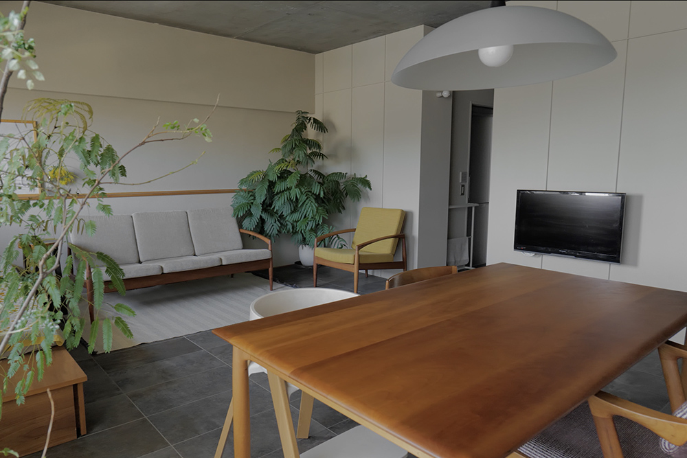 マンションという人工的な箱の中に、柔らかな自然のリズムが差し込んでいます。
